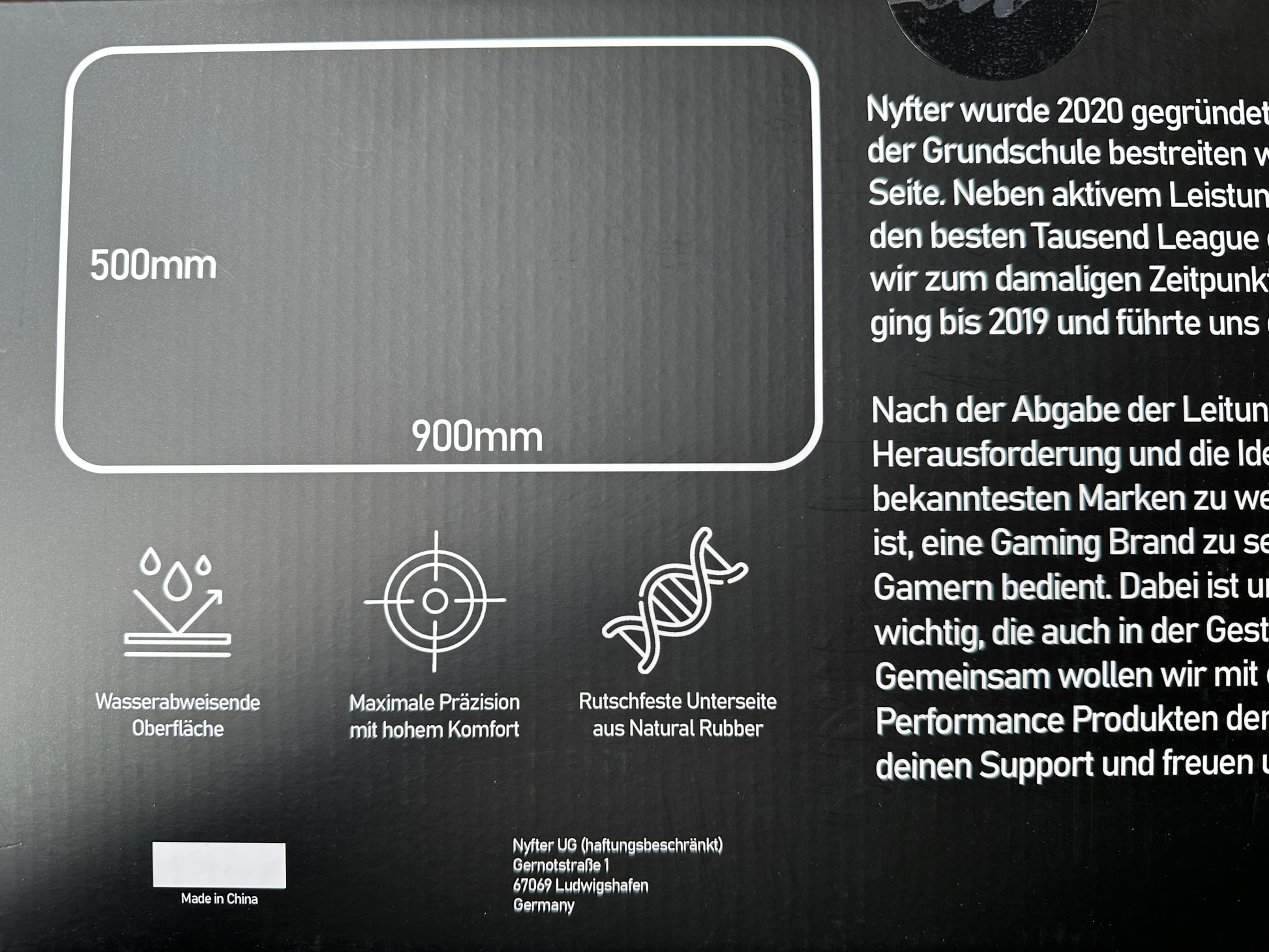 - Maße: 900x500x3mm